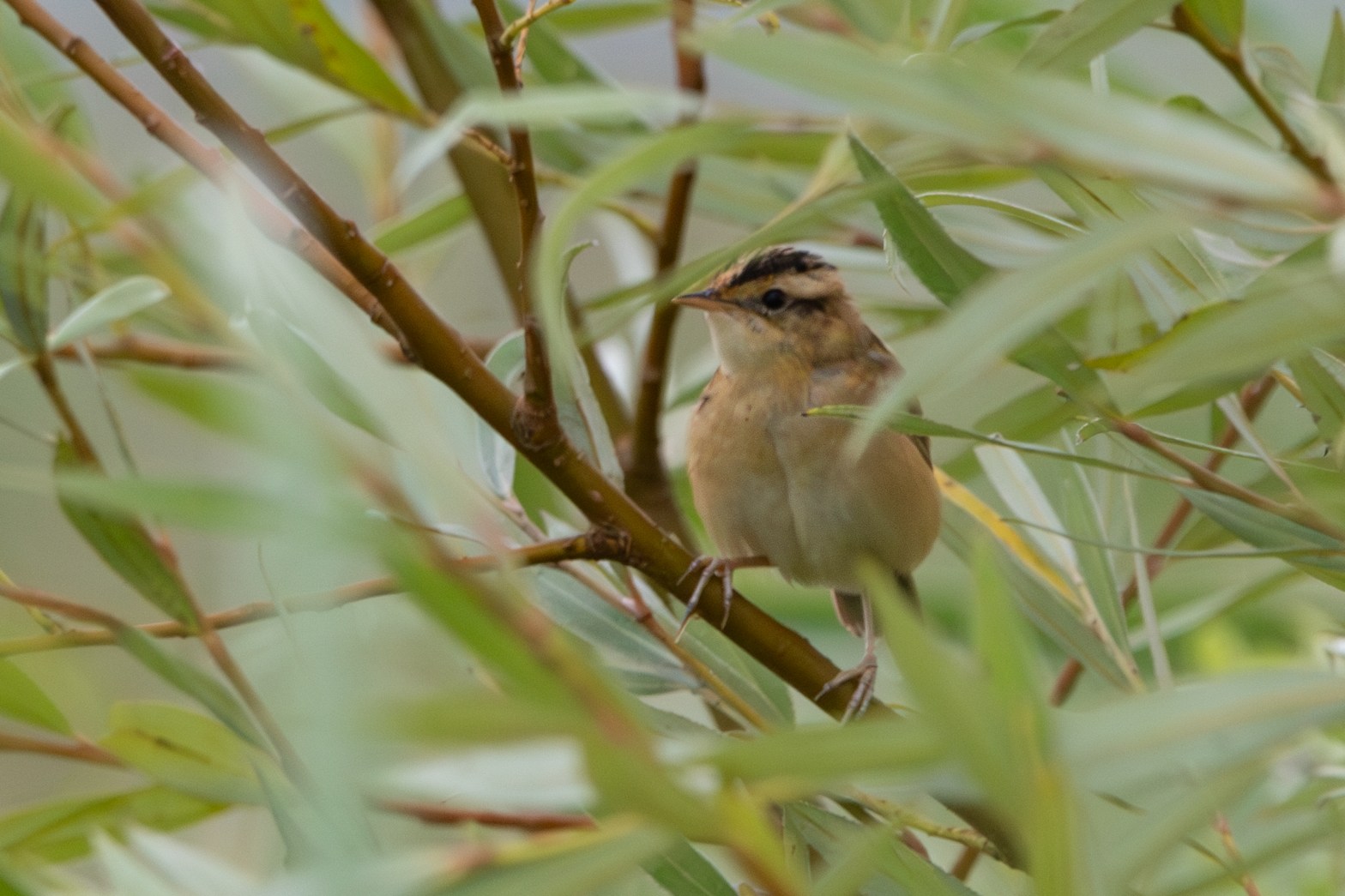 Lichte paniek en adrenaline, waar is hij heen, zou het er een zijn? Gelukkig keert hij snel terug naar het wilgje en krijg ik hem op de foto. Ik sta toch echt overduidelijk naar een Waterrietzanger te kijken!