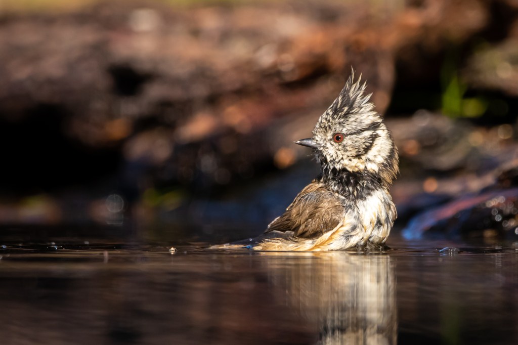 Eens in de zoveel maanden huur ik een vogelhut. Een hele dag in een hutje zitten naast een vijvertje en voederplaats op een meestal afgelegen/privé terrein. In plaats van het op pad gaan en zoeken naar de vogels is het hier een beetje hopen dat er leuke soorten langskomen. Maar dat maakt het ook weer leuk, dat beetje spanning van wat zal er nog komen. En daar was hij dan, de Kuifmees. Dringend opzoek naar een watertje om al het vuil tussen zijn veren vandaan te spoelen. Heel even wachten tot hij zich op zijn gemak voelt, heel voorzichtig de camera bijdraaien en dan is het plaatjes schieten.