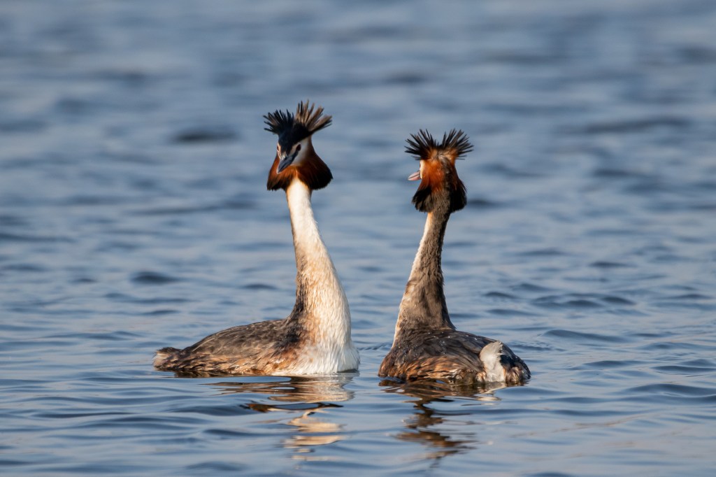 Zaterdag ochtend, vroeg op voor mijn ochtend rondje door het Bentwoud (Zuid-Holland). Het is het begin van het voorjaar, de fitissen en tjiftjafs zingen voluit. Zwartkoppen en Grasmussen laten zich goed horen. Maar toen ik bij een kleine plas aankwam zag ik deze futen midden in hun baltsritueel. Half tijgerend dichterbij en zo laag mogelijk om op ooghoogte te komen.